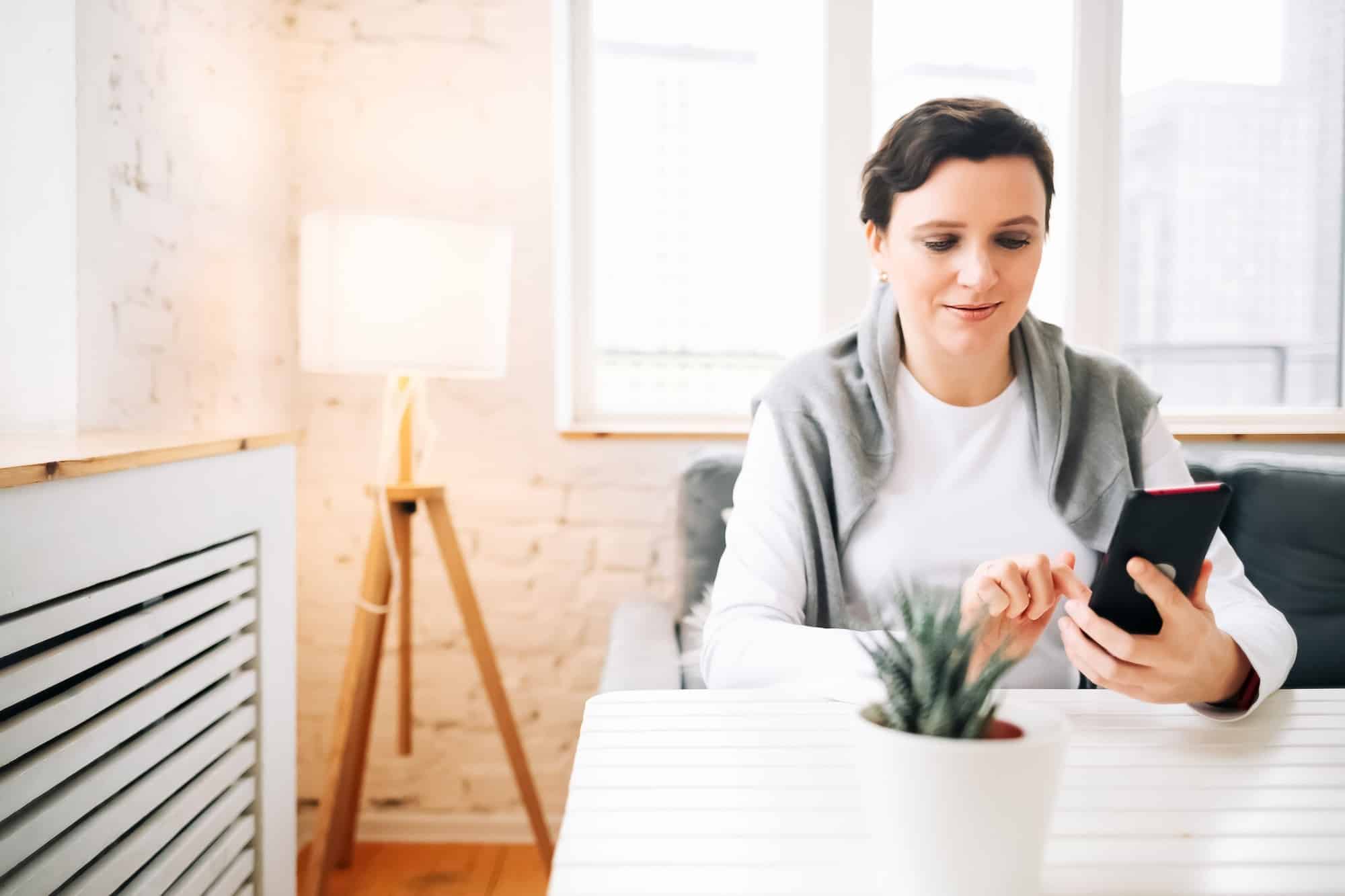 Woman reading messages on the phone