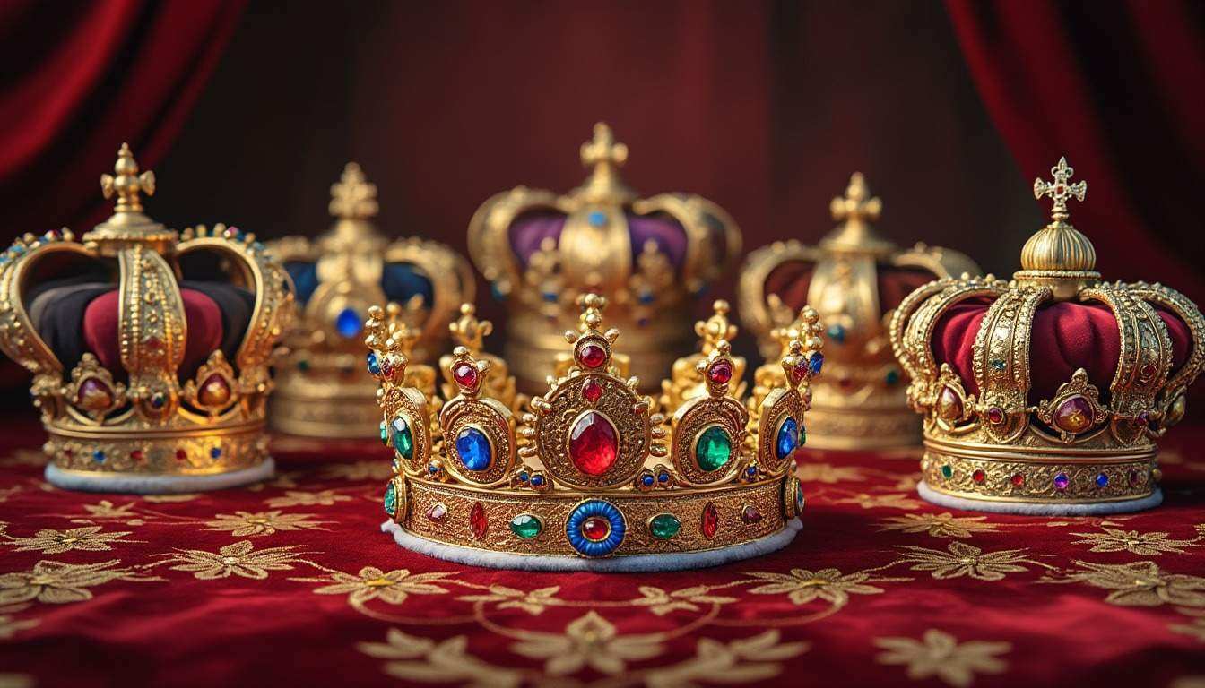 - Couronne Royale : réservée aux souverains et princes, ornée de joyaux et de fleurs de lys, elle symbolise la suprématie politique et divine.
