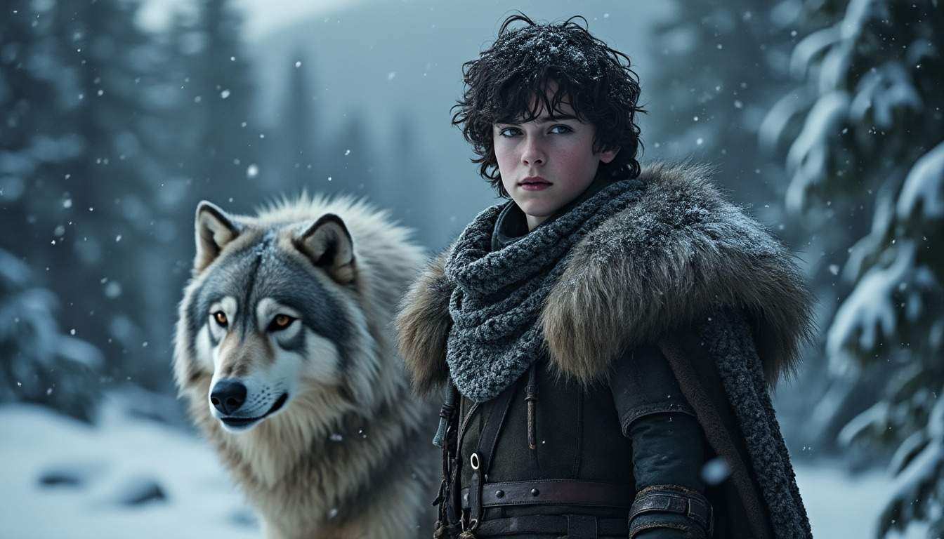 Cette bête sauvage est omniprésente à ses côtés, prête à protéger mais aussi à attiser la colère refoulée du garçon face aux épreuves. Le leur est un partenariat où l’instinct prime, ce qui illustre l’impossibilité pour Rickon de s’adapter aux contraintes du monde civilisé dévasté par la guerre. Broussaille devient le symbole d’un dernier enfant Stark en quête d’identité dans une époque déchirée.